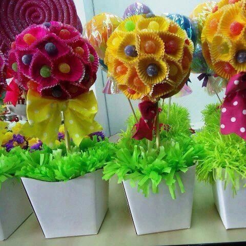 Árvores e Cones de vários tamanhos feitos com bala de goma.
